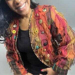 Vintage Boho Festival Bomber Fringe Patchwork Bolero Cropped Handmade Jacket 😍
