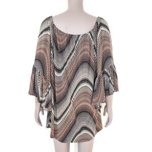 -Brown, black, gray, and beige abstract print stretchy fabric