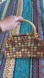 Vintage Boho Fossil Purse with Wood/Wicker Handles and Leaf Pattern