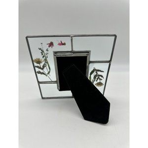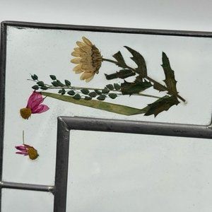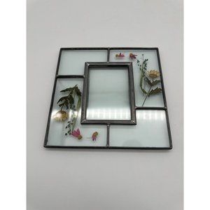 Vintage Boho Glass Pressed Dried Flower Picture Frame. Some signs of age/use. Easel sits loosely in slot on back of frame. 6x6