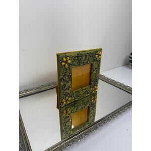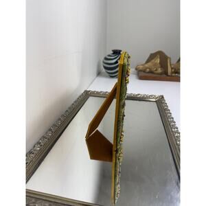Vintage Boho Hand Embroidered & Beaded Fabric Picture Frame, Green and Yellow
