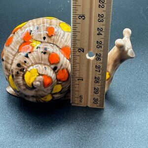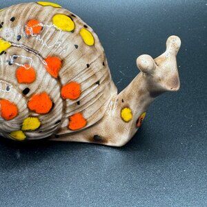 Vintage Boho Hand Painted Ceramic Snail with Speckled Design Tan Orange yellow