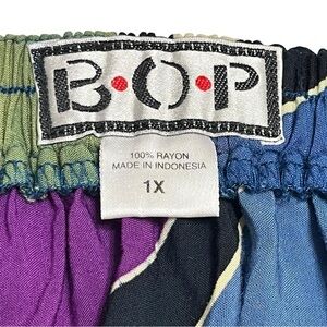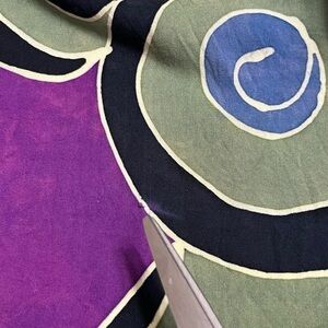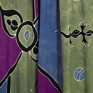 This boho skirt has an interesting print with iguanas and geometric shapes in black with a tie-dyed purple, green and blue background. No worries that someone else will show up wearing the same thing as you! You will truly be an original in this awesome skirt.