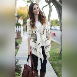 Vintage Boho Large Wool Southwestern Aztec Native Fringe Shaw Wrap Cardigan