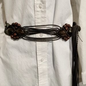 Vintage Boho Macramé Women's Belt Beaded Adjustable Tie Closure Vegan Leather