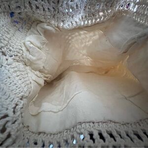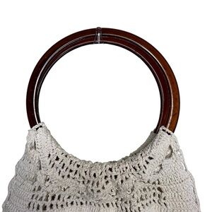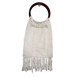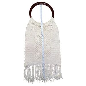 Vintage Boho Macrame Crochet Fringe Bag with Lucite Handles Cream Fully Lined
