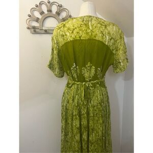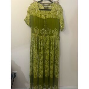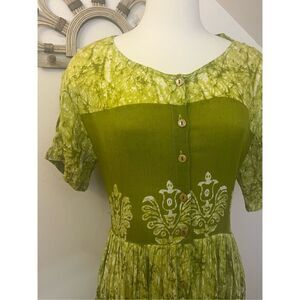 Vintage Boho Made in India Green Rayon Maxi Dress S/M