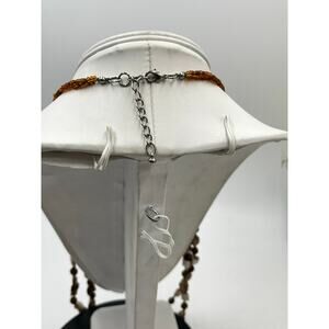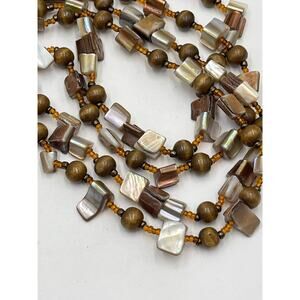 Vintage Boho Multi-Strand Wood Mother of Pearl Shell Bead Necklace Earth Tones