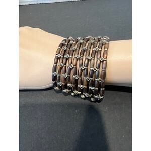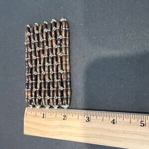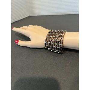 Vintage Boho Multi-Tone Bronze Metal Beaded with Rhinestones Stretch Bracelet