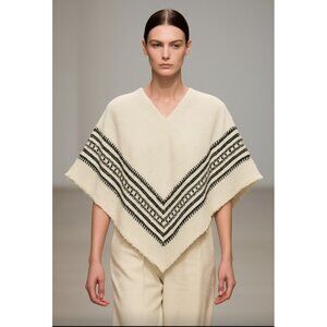 Vintage Boho Myrjord Veverias Norwegian Handwoven Wool Poncho Cape Unisex