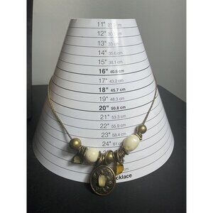 Vintage Boho Necklace With Large Beads & Charms Gold Tone Adjustable Chain