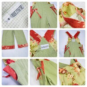 Vintage Boho Neutral Gingham Green Floral Cropped Overalls Romper Small / 5 - 6