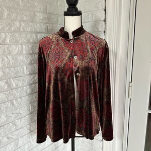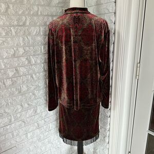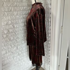 Beautiful vintage skirt set w/ velour paisley pattern and beaded fringe. Truly a one of a kind piece.