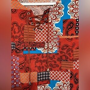 Vintage Boho Patchwork Hippie Sleeveless Cotton Shirt Womens Size Large