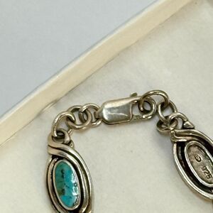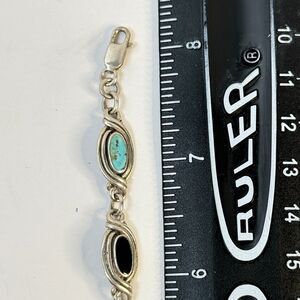 Vintage Boho SW 925 Silver Multi Stone Cabochon Link Bracelet 7" Turquoise Onyx
