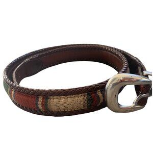 Vintage Boho Southwestern Woven Silver Buckle Belt 38