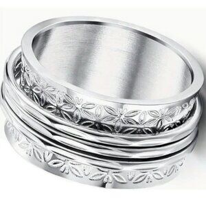 Vintage Boho Style Silver Wide Band Spinner Ring