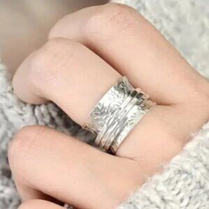 Vintage Boho Style Silver Wide Band Spinner Ring