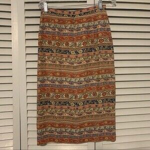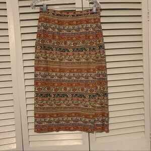 Vintage Boho Talbots Printed Faux Wrap Skirt 100% Rayon Size 10 Made in USA