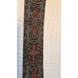 *Intricately woven floral and scroll tapestry pattern black base with gold, red, blue, and tan embroidery