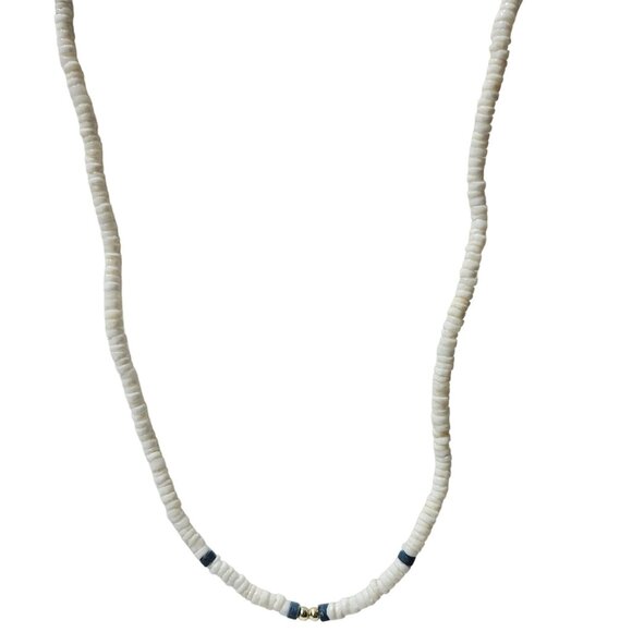 Vintage Boho White Blue Heishi Bead Necklace Boho Beach Core Fashion Jewelry Men