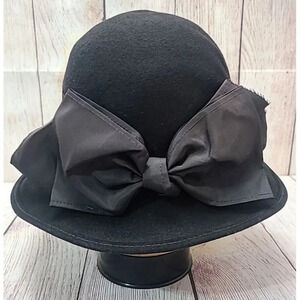 Vintage Bollman Importina Women's Fedora Style Hat One Size Bow Black Wool USA