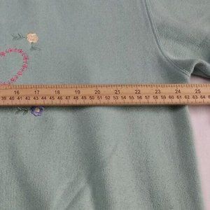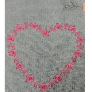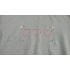 Vintage Bolo Spirit Sweatshirt flower hearts Embroidered Sz L Mint Green Women