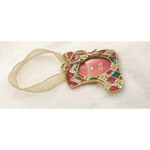 Vintage Bombay Christmas Stocking Ornament Photo Picture Frame Faux Rhinestone