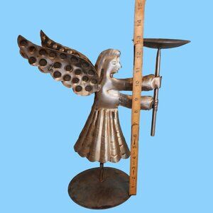 Vintage Bombay Co Large Hammered Metal Decorative Angel Candle Holder