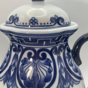 Vintage Bombay Company Blue and White Tea Pot With Lid Floral Motif