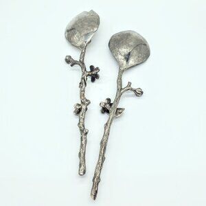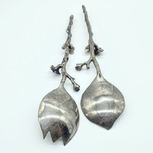 Vintage solid metal branch serving spoon and fork set designed by Michael Aram for The Bombay Company.