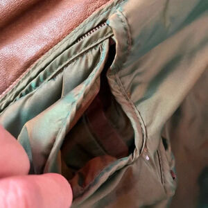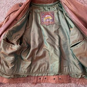 Wow! This is in pristine condition!! I have no idea where or when my Dad got it. Zip out lining adjustable waist with snaps. So cool!!!Authentic leather.
