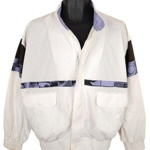 Vintage Bomber Jacket Mens Size Medium White Purple 80s 90s Abstract Lightweight