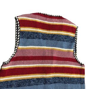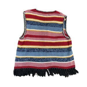 Vintage Bon Magique Womens L Knitted by Hand Sweater Vest Front Button Fringe