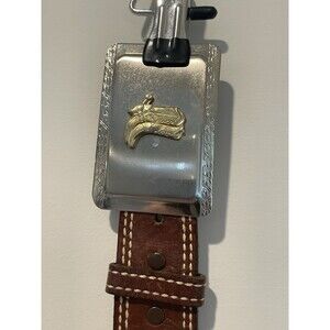 Vintage Bona Allen Brown Leather Belt With Gold And Silver Tone Western Buckle