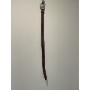 The Vintage Bona Allen Brown Leather Belt with Gold and Silver Tone Western Buckle exudes a classic Western cowboy style. Made with a solid brown leather belt and featuring a stunning gold and silver tone metal buckle insert, this accessory adds a touch of vintage charm to any outfit. Perfect for those who appreciate true vintage pieces with a hint of Western flair, this belt is a timeless addition to any wardrobe.