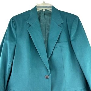 Vintage Bonders Blazer Womens Size 14 Teal Button Long Sleeve Made in USA Preppy