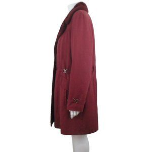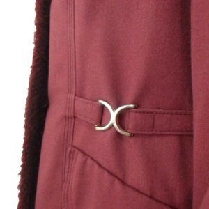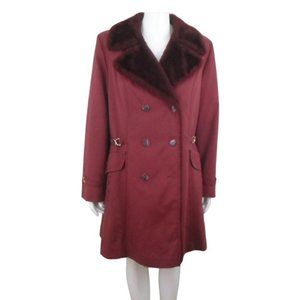 Vintage Bonders Burgundy Red Midi Coat Faux Fur Double Breasted