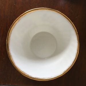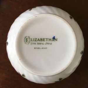 Vintage 1980's Elizabethan English fine bone china sugar and creamer set in the Victorian style, features pink rose appliqués under the glaze and gold paint trim. Perfect for a tea party. May also be used for a Victorian doll accessory or display as a small pitcher and wash basin. Pitcher stands approx. 3-3/4" high and 3-1/2" wide including handle. Bowl stands 1-3/4" high and measures 3-3/16" in diameter at the top. Set weighs 6.5 oz. Made in England. Excellent Vintage Condition - No cracks, chips or scratches. The gold paint trim is very slightly worn on the handle of the pitcher not obvious to the naked eye. The bowl bears a very small dark smudge next to one of the leaves, which is under the glaze - see Photo #7. Pitcher and bowl set will be shipped by USPS First Class Package within 48 business hours, securely packed in appropriate packaging materials inside a sturdy shipping box.
