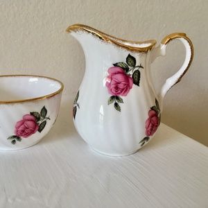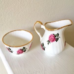 Vintage Bone China Sugar & Creamer Made in England Pink Roses 3-3/4" High