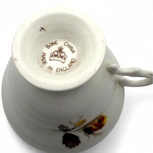 This exquisite bone china tea cup, crafted in England, showcases a delicate yellow rose motif with elegant gold trim. Its vintage charm and classic design make it an ideal collector's piece or a refined addition to your tea set collection.