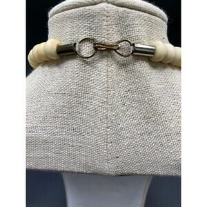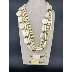 Vintage Bone Multi-strand Necklace Matching Pierced Earrings Individual Beads