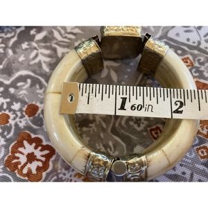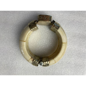 Lovely vintage bone/silver bangle bracelet with hinged pin closure