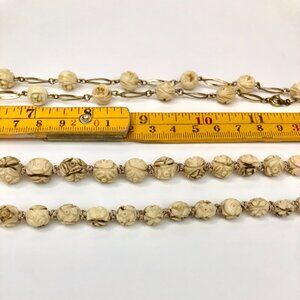 Vintage Bone Rose Boho Necklace Set (2) โ Hand-Carved Cabbage Roses, Silk Strand