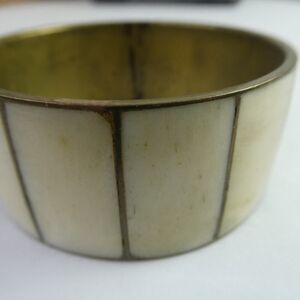 Vintage Bone Scrimshaw Inlay Inlaid Wide Bangle Bracelet Chunky Boho Festival