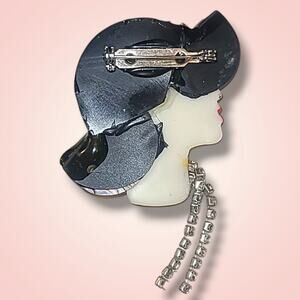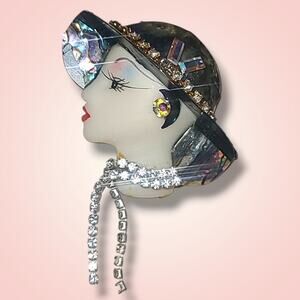 Vintage Bonetto Bisque Girl Head Rhinestone Abalone Hat Brooch Pin *Read