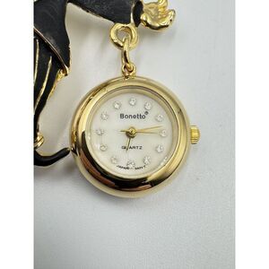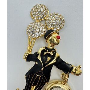 Vintage Bonetto Gold Tone Clown Rhinestone Balloons Brooch Watch New Battery