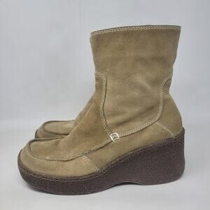 Vintage Bongo Boots 8 Tan Brown Suede Platform Wedge 90s Y2K Retro Chunky Ankle