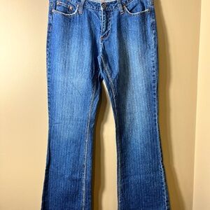 Step into early 2000s nostalgia with these vintage Bongo flare jeans in juniors size 11. Featuring a classic low-rise waist, subtle whiskering, and a faded medium wash, these jeans are perfect for channeling that iconic Y2K aesthetic. The bootcut flare leg adds a flattering silhouette, while the contrast stitching and embroidered back pockets give off effortlessly cool, retro vibes.