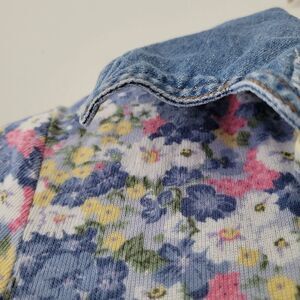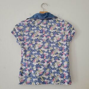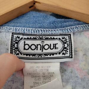 Vintage Bonjour Floral Knit Top Denim Collar 90s Small Blue